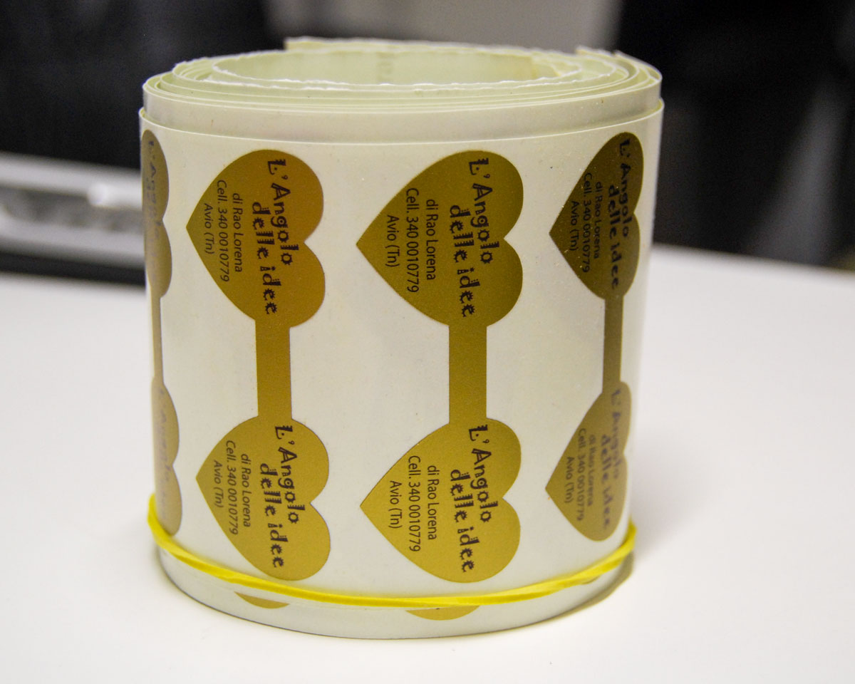 Per L’Angolo delle Idee abbiamo realizzato sigilli di sicurezza personalizzati su base oro con scritte nere, disponibili in tre eleganti forme: cuore, nuvola e rettangolo con angoli smussati. Questi sigilli uniscono estetica e funzionalità, garantendo sicurezza e raffinatezza ai loro prodotti.
